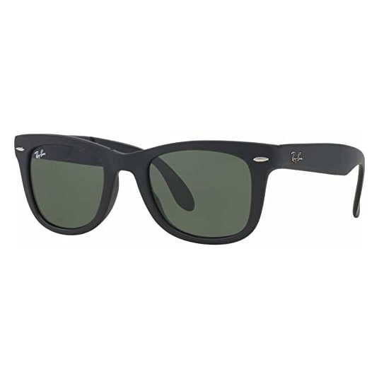 The Wayfarer Sunglasses 0RB4105-601S50-RB feature a sleek Matte Black frame with G-15 Green lenses, offering a modern take on the classic Wayfarer style. Crafted from durable injected material, these sunglasses provide both comfort and longevity. The folding design ensures a personalized fit and easy storage, while the solid color lenses offer superior UV protection. Perfect for those who appreciate timeless elegance with a contemporary twist, these sunglasses are a standout accessory.