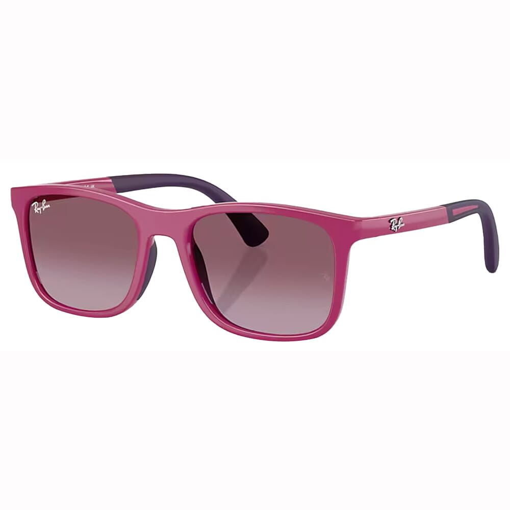 The Ray-Ban Junior sunglasses, model 0RJ9084S-71498H47-RB, feature a fuchsia on rubber violet frame and gradient violet lenses, offering a chic and modern design for kids. Made from durable injected material, these sunglasses are lightweight and comfortable for everyday wear. The square frame shape provides a stylish and elegant appearance, while the gradient lenses ensure superior UV protection. Perfect for any occasion, these sunglasses are a must-have accessory for children who appreciate both fashion and functionality.