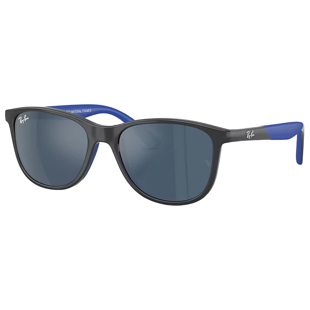 The Ray-Ban Junior Bio-Based sunglasses, model 0RJ9077S-71515549-RB, feature a polished grey on orange frame and dark blue lenses, offering a bold and eco-friendly design for kids. Made from sustainable bio-based materials, these sunglasses are lightweight and comfortable for everyday wear. The square frame shape provides a modern and stylish appearance, while the solid color lenses ensure superior UV protection. Perfect for any occasion, these sunglasses are a must-have accessory for children who appreciate both fashion and sustainability.