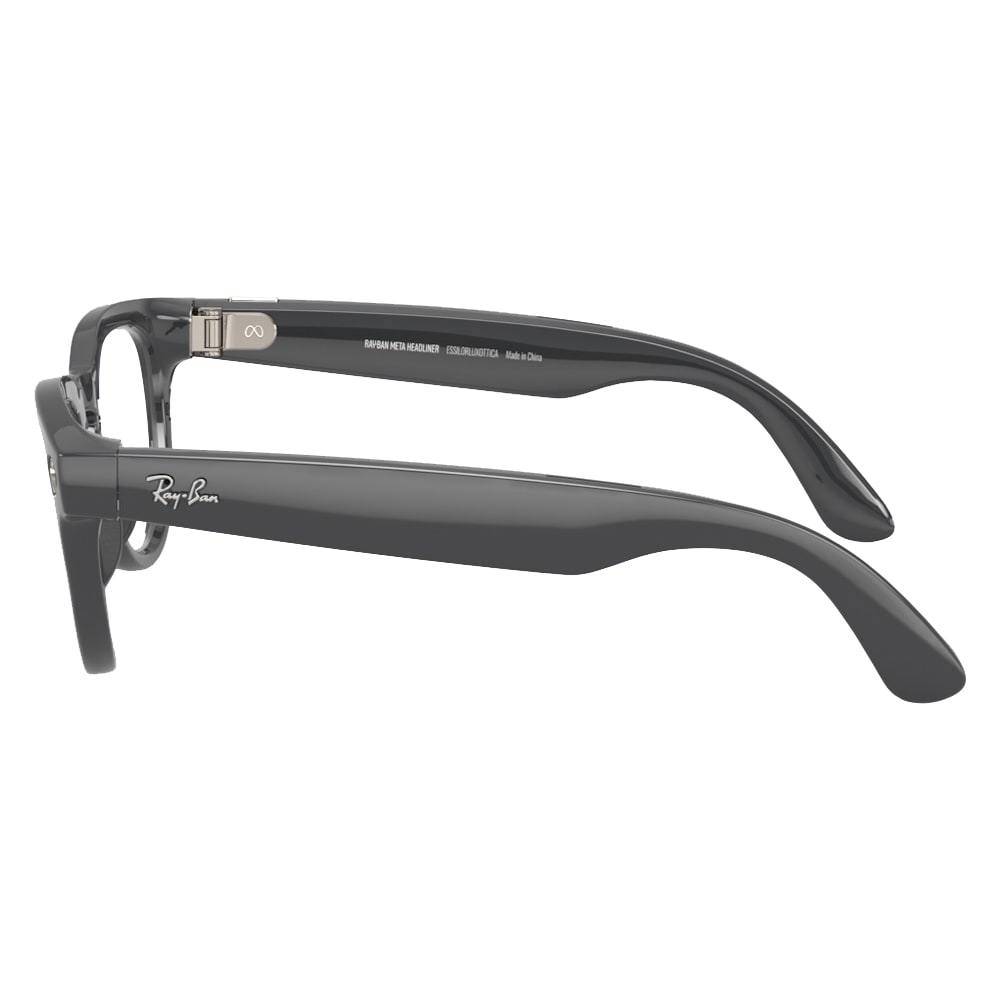 The Ray-Ban Meta Headliner combines a stylish, retro-inspired design with advanced smart eyewear technology. The Transitions Emerald lenses feature photochromic technology that automatically adjusts tint based on lighting conditions, transitioning from clear to a vibrant emerald hue, providing optimal vision comfort throughout the day. Designed with a 23 mm bridge, 43 mm lens height, and 50 mm lens width, this model offers a comfortable fit for medium-sized faces. Weighing approximately 2 oz (57 g), the glasses feature an injected plastic frame that houses embedded smart technology components, including a built-in 12 MP camera, open-ear speakers, and Meta AI capabilities for hands-free interaction. These smart glasses are not ANSI Z87.1 certified, emphasizing lifestyle use over industrial safety.