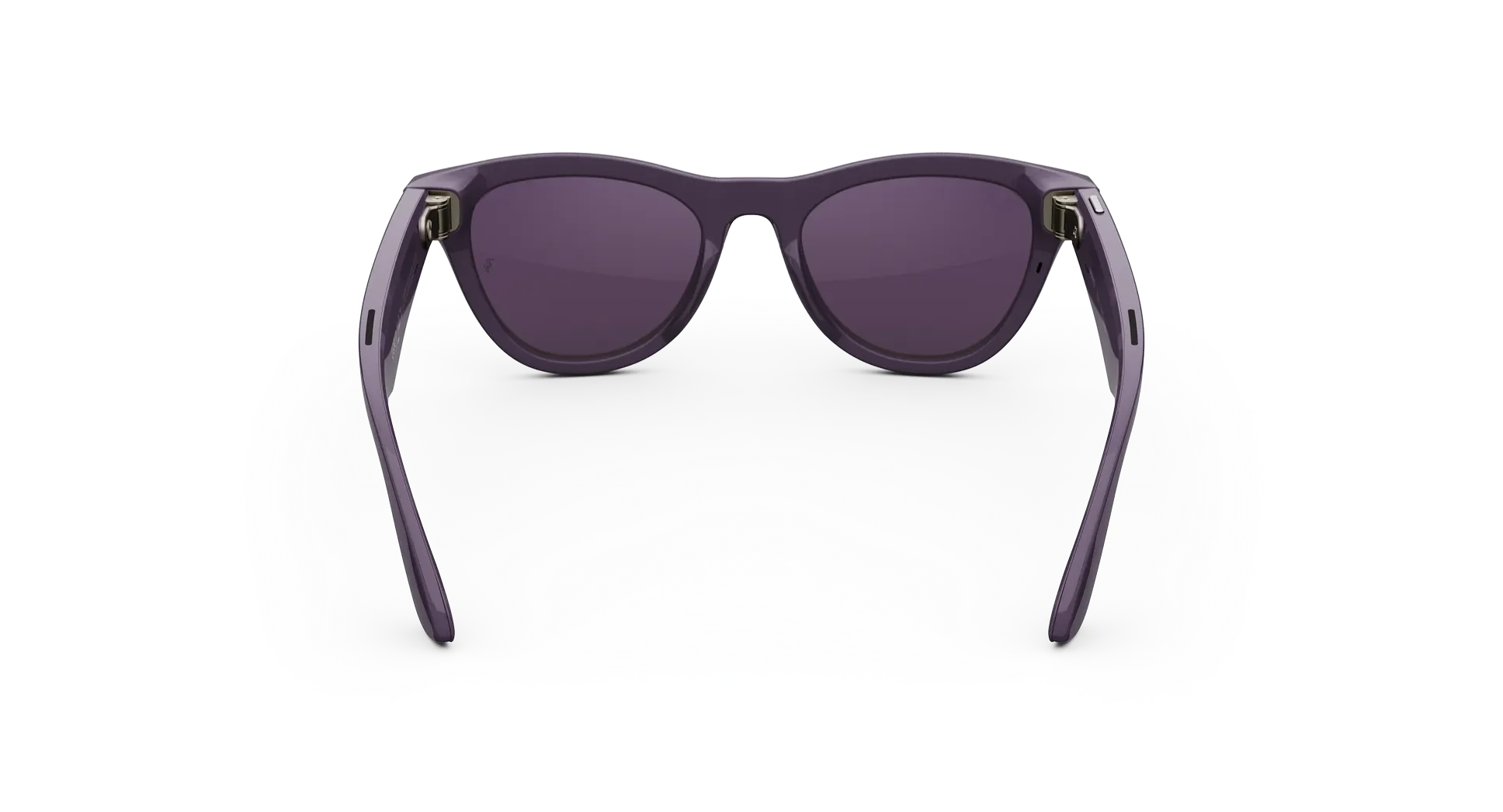 The Ray‑Ban Meta Skyler merges a fashion-forward color palette with Meta’s smart eyewear functionality. The frames feature a striking Violet glossy finish that catches the eye, while the Amethyst-transitional lenses shift in tint based on ambient light to offer comfortable vision and UV protection—though they are not polarized. Built with a 52 mm lens width, 20 mm bridge, and 150 mm temples, the design fits typical adult facial dimensions within the Skyler line. Constructed from injected plastic with embedded electronics, the glasses weigh about 2.0 oz, offering a balance between technology and wearability. As with most Ray-Ban Meta glasses, they are not ANSI Z87.1 certified, so they should not be used as certified protective eyewear in industrial settings.
