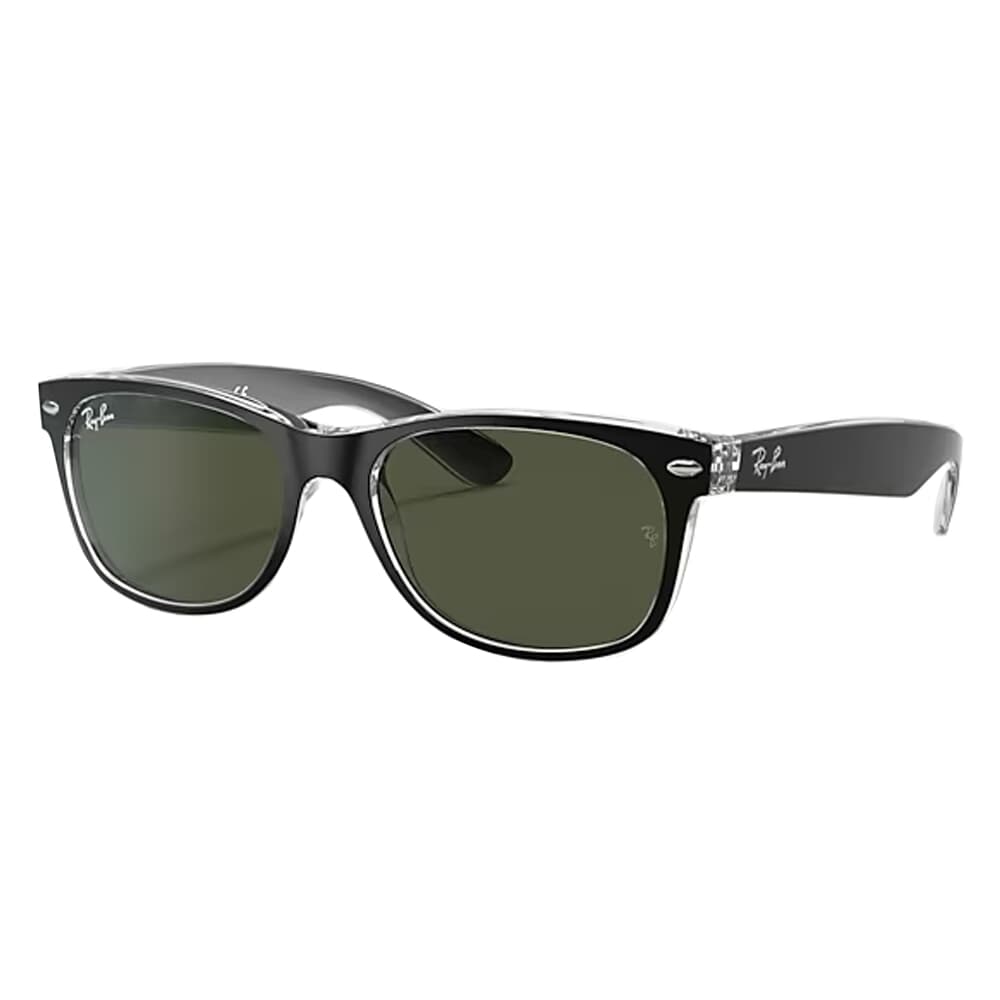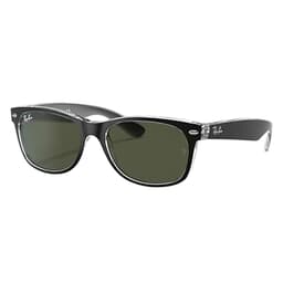 The Ray-Ban New Wayfarer Classic RB2132 sunglasses in polished black with G-15 green lenses offer a fresh take on the iconic Wayfarer design. These sunglasses provide 100% UV protection and feature polarized lenses that eliminate glare, increase clarity, and enhance contrasts. The lightweight nylon frame ensures durability and comfort, while the flexible wire cores inside the lenses adjust for a customized fit. Ideal for those who want to stand out, the New Wayfarer Classic sunglasses blend timeless appeal with modern design.