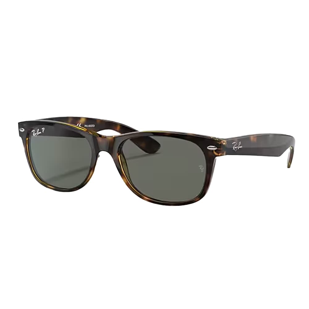 The Ray-Ban New Wayfarer Classic RB2132 sunglasses in polished tortoise with G-15 green lenses offer a fresh take on the iconic Wayfarer design. These sunglasses provide 100% UV protection and feature polarized lenses that eliminate glare, increase clarity, and enhance contrasts. The lightweight injected frame ensures durability and comfort, while the flexible wire cores inside the lenses adjust for a customized fit. Ideal for those who want to stand out, the New Wayfarer Classic sunglasses blend timeless appeal with modern design.