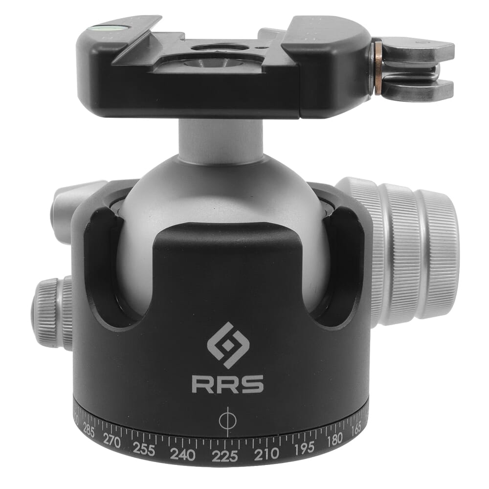 The BH-55 Ball Head by Really Right Stuff is one of the best ball heads available, and is a perfect choice for experienced professionals as well as enthusiastic amateurs. It delivers up to 45 degrees of tilt in every direction, and up to 90 degrees in the two drop notches. The main lock knob is knurled, and independently controls the tension of the main ball joint, while the midsized knurled knob independently controls the panning base, and is marked every 2.5 degrees with laser engravings. A smaller spade knob works in conjunction with the main lock knob to create a minimum amount of resistance on the ball joint at all times regardless of the main lock knob being fully loosened or not.