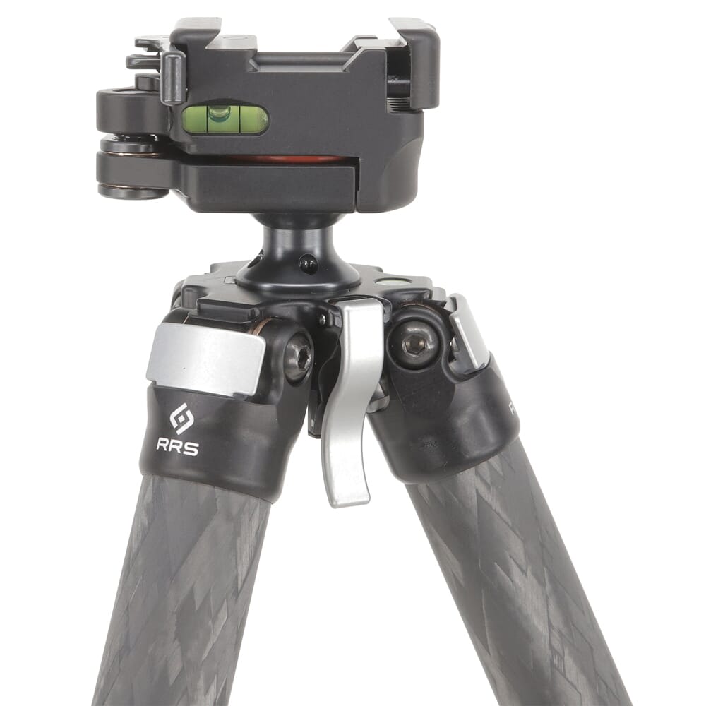 Really Right Stuff’s series of TFCT-14 Tripods are a result of continuous improvements based on customer feedback, and come packed with RRS exclusive features. Improvements include the R-LOCK (Rapid-Lock) safety-stop feature in the clamp, which utilizes a 5mm pin that connects with corresponding R-LOCK holes in the rail. This pin is spring loaded which automatically engages with the holes, or can be pushed down by non R-LOCK rails for use with a wide array of “arca-type” rails. The advantage to this system gives the user several “hard-stop” positions along the rail, but retains smooth edges and corners for great ergonomics and is highly resistant to wearing down. This system also helps prevent accidental repositioning of the rail within the clamp when the R-LOCK is engaged. Other features of this tripod include O-rings to keep threads clean and smooth, and a vented clevis design so legs can collapse faster without pressure buildup. This tripod also has threaded sockets on the sides of the apex for placement of accessories like QD attachments or a BC-18, and a patent-pending taper lock system that secures the ball head inside the apex making it unable to slip. In addition, the TFCT-14 is outfitted with offset leg joints, so the weight of heavy loads is distributed to the strongest parts of the tripod.