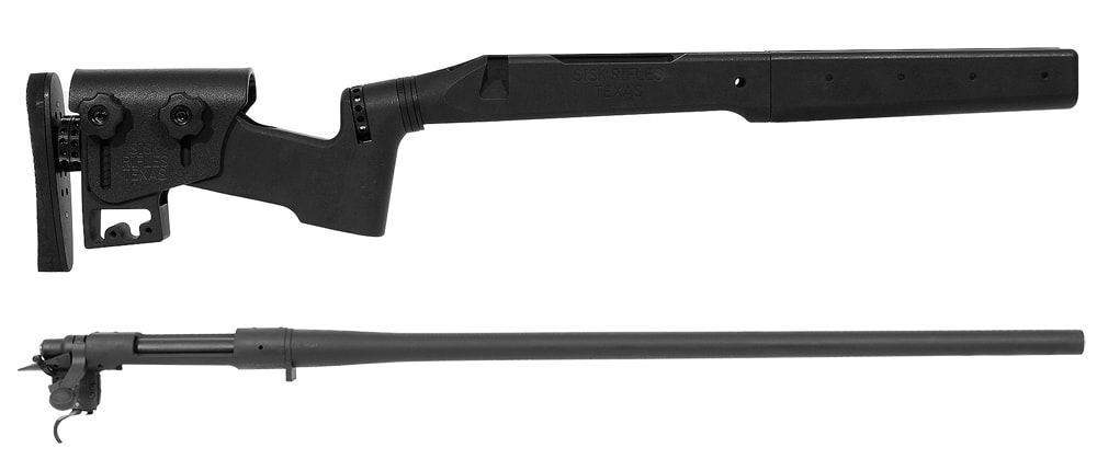 This rifle kit, consisting of Remington 700P barreled action and Sisk STAR AR Chassis, combines two great options available to long range shooters into a package requiring no gunsmithing to assemble. This combination allows you the accuracy, familiarity and smooth action of the renowned 700 action chambered in the accurate 300 Win Mag with the Sisk STAR T1's generous LOP adjustment (± 4") and incredibly customizable fit.