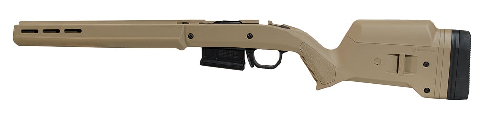 This Remington 700 Police .308 Win barreled action comes with a FDE Magpul Hunter 700 Short Action Stock, Magpul Detachable Mag Bottom Metal (DBM), and a 5 round Magpul Magazine. The Magpul chassis provides an ergonomic and functional benefit as well as providing a stable, rugged platform for the Remington 700 Police barreled action to shine.