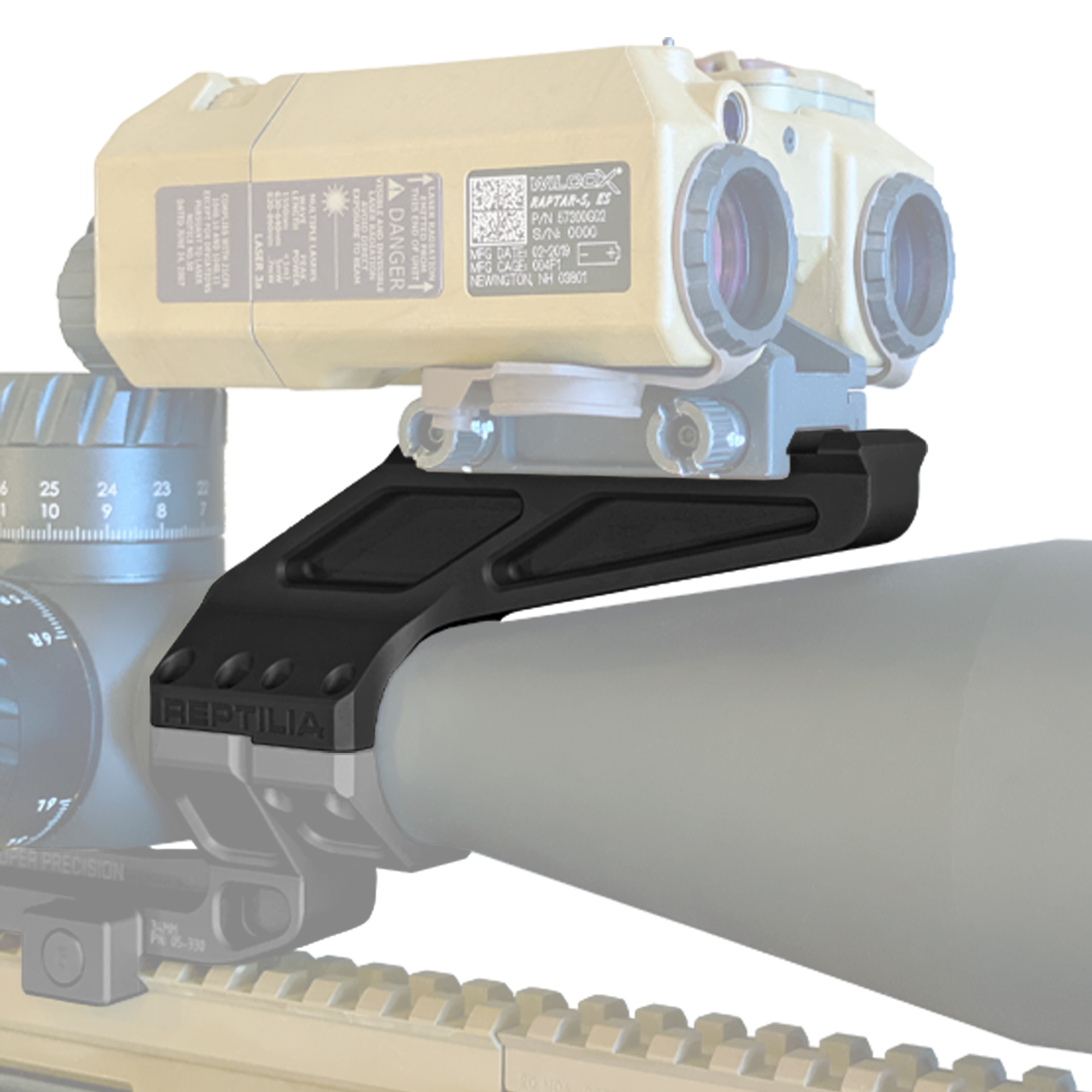 The Reptilia 34mm Black ROF-Diving Board Mount, model 100-266, is designed for Nightforce UltraMounts, placing a MIL-STD-1913 rail at the ideal position and height for mounting laser range finders, laser designators, or miniature red dot optics. Machined from billet 7075-T6 aluminum and finished with mil-spec Type III hardcoat anodize, this mount is lightweight and durable. It is optimized for use with Nightforce NX8 2.5-20x50 F1 but is compatible with a wide range of Ray-Ban higher power magnified optics. Ideal for enhancing the functionality of your optic setup, this mount is a versatile addition to any shooting system.
