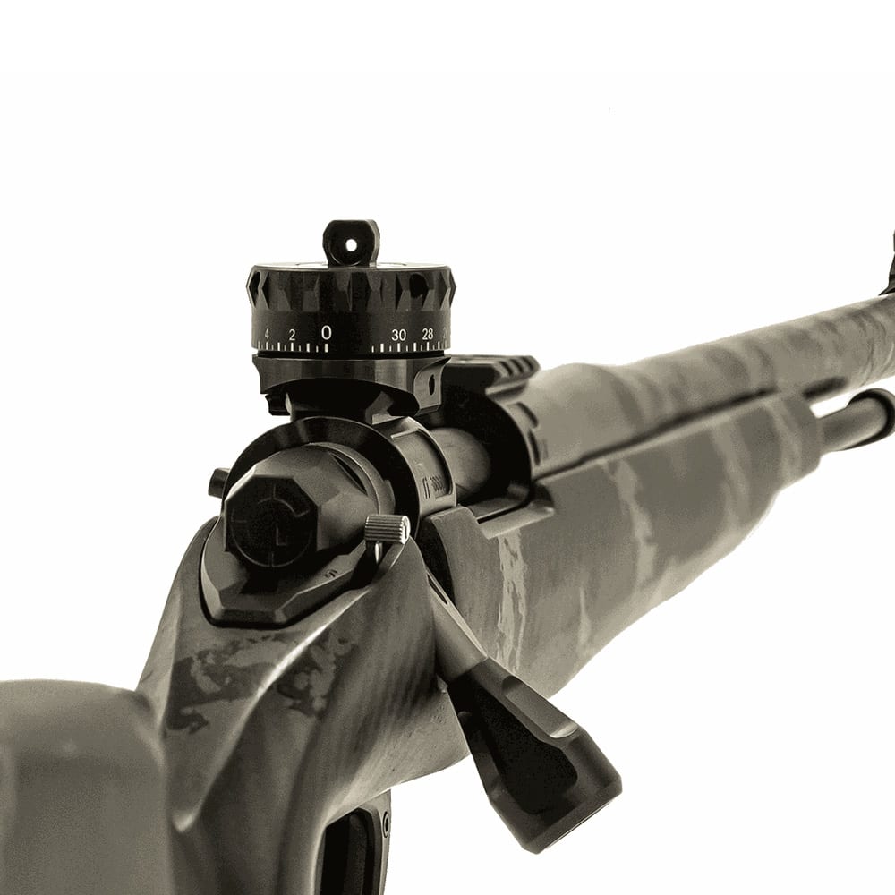 The Revic EXO Extreme MOA Sight - Muzzleloader AY-R-E8505 is an advanced open sight system designed to maximize effective shooting distance for muzzleloaders. Similar to a rifle scope elevation turret, the EXO sight allows for precise aiming over varying distances by raising and lowering the peep sight aperture. With 32.5 MOA of adjustment travel and custom ballistic data ring options, this sight ensures accurate and intuitive shooting. The durable construction and compatibility with the Revic ecosystem make the EXO Extreme MOA Sight a top choice for serious shooters.