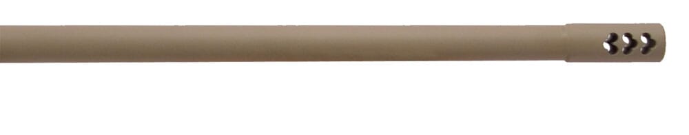 This McMillan G30 TAC-338 .338 Lapua Mag rifle features a flat dark earth finish with duracoat coating, match grade 26.5" barrel with muzzle brake, detachable box magazine, square-surfaced recoil lugs, and a McMillan A-5 tactical stock with spacer system, integral adjustable cheekpiece, and flush mount swivel cups.