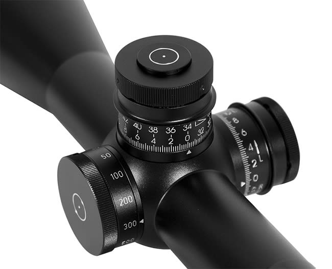 The 3-27x56 PM II line features some of Schmidt Benders most advanced elevation and windage turret options. Like the Gen II Double Turn II+ with tactile turn indicator, MTC or ZC and Locking Turret, that features a lower profile allowing for the mounting of a reflex sight above the scope. On the other end of the spectrum, the Multi Turn II with tactile and visible revolution indicator, MTC and locking Turret option that provides a more precise .05 mrad (or 1/8 MOA) adjustments while displaying markings for 5 full revolutions.