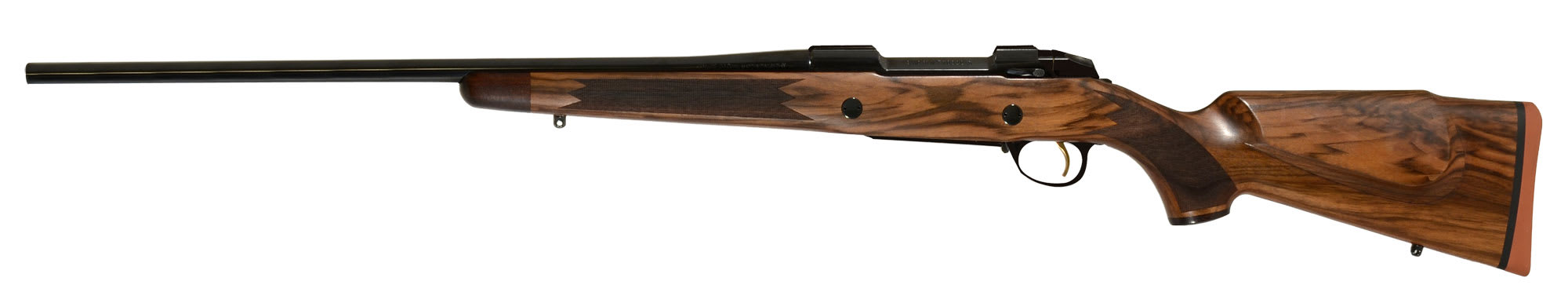 This Sako Deluxe .25-06 Rem rifle is a timeless beauty with a high grade walnut stock, rosewood details, classic checkering, highly polished metal parts, fixed magazine, Sako pistol grip inlay, and a red recoil pad.