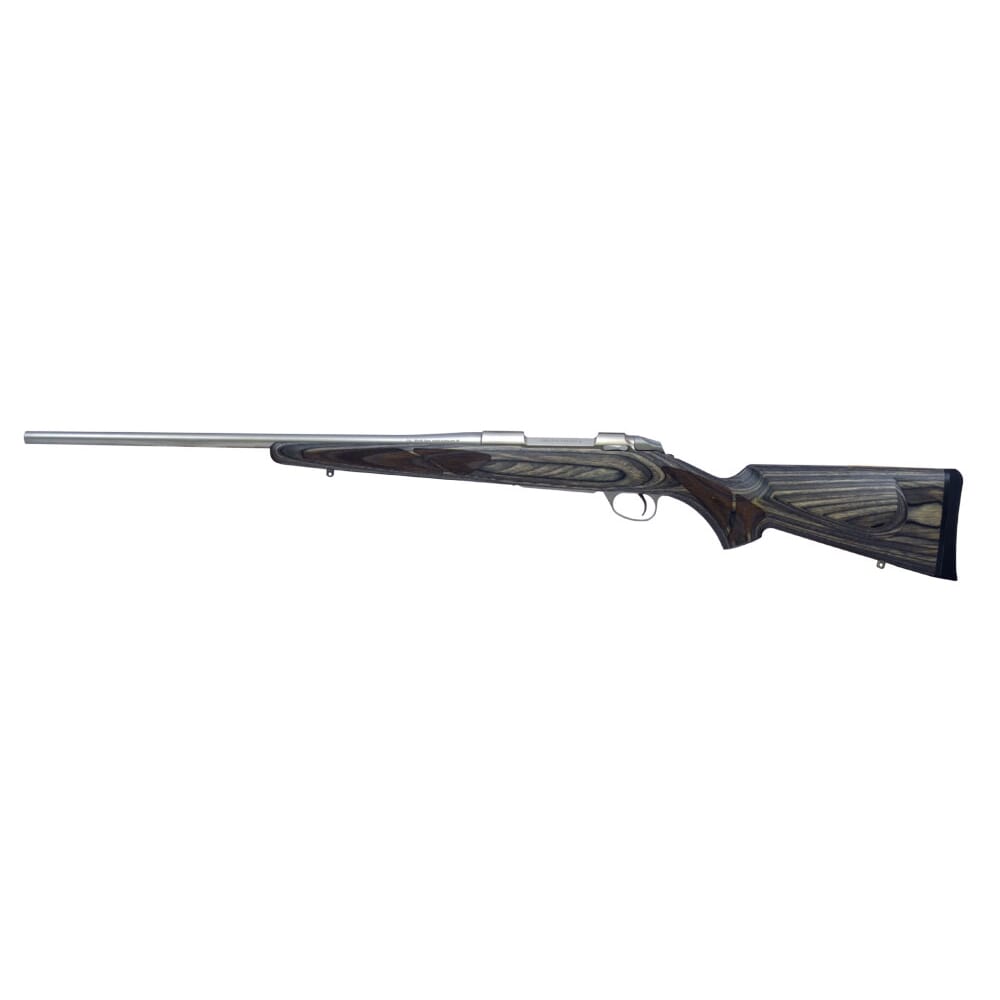 The Sako 85 Grey Wolf features the same all-stainless barreled action as its cousin, the Sako 85 Stainless Synthetic, combined with an attractive yet ultra-tough checkered grey laminated stock. The stock features classic American-style lines with its straight comb and sleek profile, plus a shadow-line cheekpiece on the left side. The stainless barreled action and warp-free stock makes the Sako 85 Grey Wolf perfect for hunting in extreme conditions while retaining the warm look and feel of a traditional wood stock.