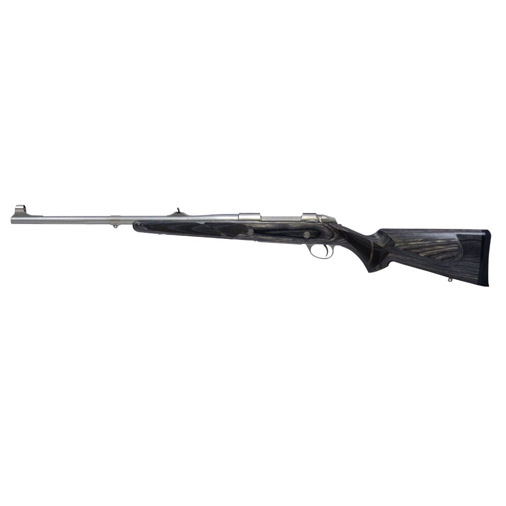 The Sako 85 Kodiak is an accurate, reliable, and durable bolt-action rifle designed with bear hunters in mind. This Kodiak is chambered in the heavy-duty .338 Winchester magnum cartridge, an effective round for large game. The rifle itself uses Sako’s well-renowned 85 type action, and utilizes a detachable stainless steel magazine with a capacity of 4 rounds plus one in the chamber. The short 21.25 inch barrel is cold-hammer forged and made out of top quality stainless steel alloy. The fully adjustable open sights use the V-notch design, a type common among guide and dangerous game rifles.