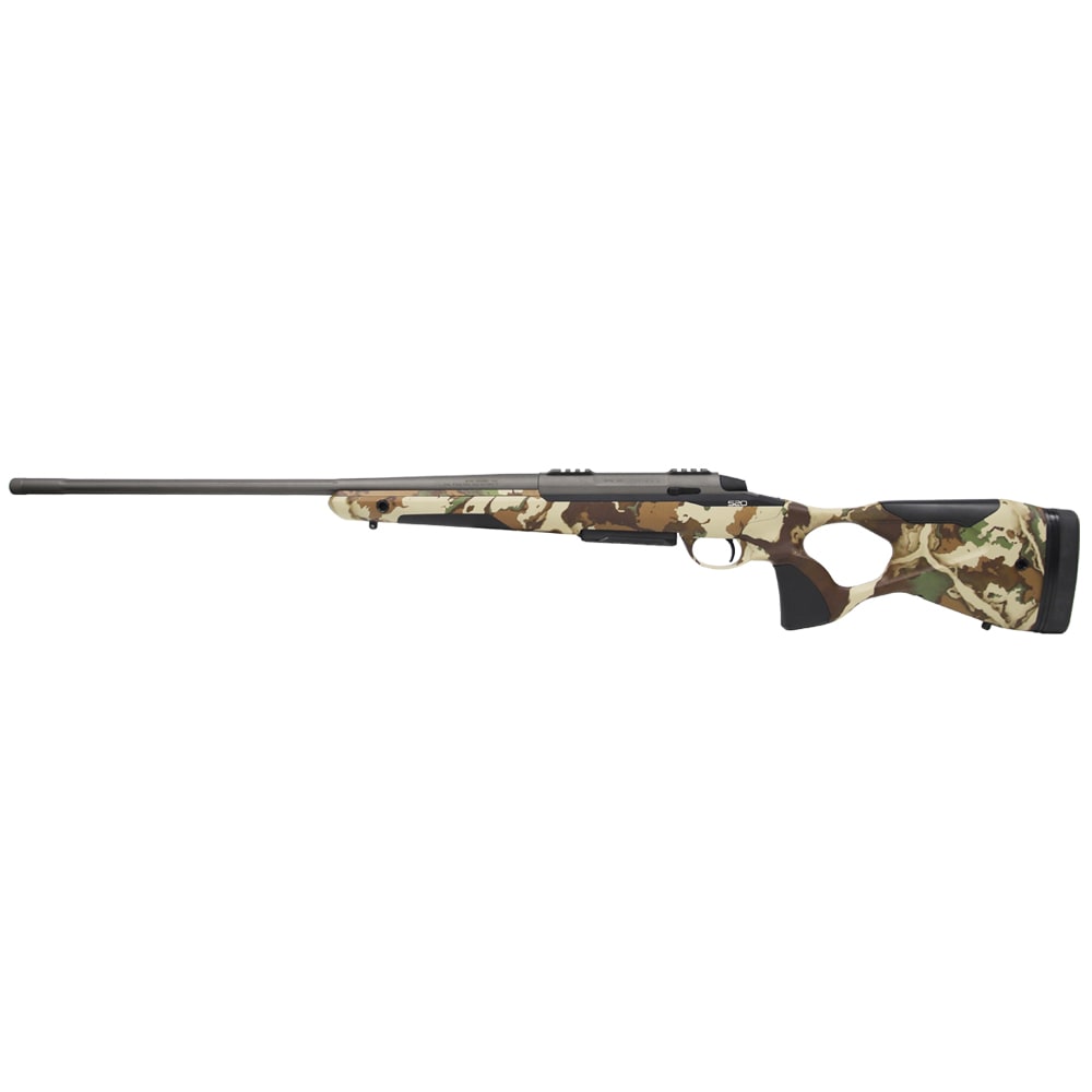 The Sako S20's stainless steel action is brand new and features a 3-lug, push feed bolt with plunger ejection to maximized reliability. The Cerakoted receiver of the S20 features a machined Picatinny rail that allows for the easy mounting of riflescopes. The trigger of the S20 is adjustable for pull weight and for position within the trigger guard (± 7mm) to ensure an absolute perfect length of pull for the shooter. The barrel of the S20 is made from stainless steel and fluted to reduce weight and barrel cool down time. The muzzle of the rifle is 5/8x24 threaded, allowing for the addition of muzzle devices like suppressors or brakes.