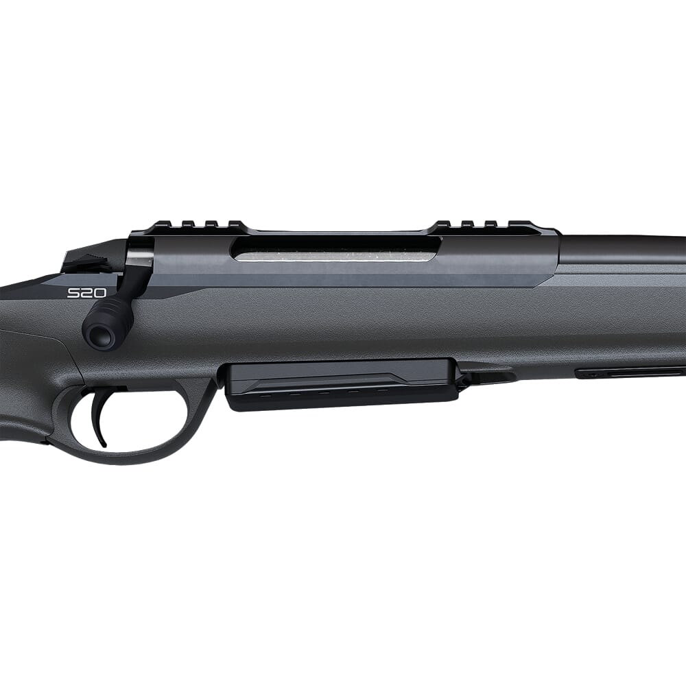 The Sako S20's stainless steel action is brand new and features a 3-lug, push feed bolt with plunger ejection to maximized reliability. The Cerakoted receiver of the S20 features a machined Picatinny rail that allows for the easy mounting of riflescopes. The trigger of the S20 is adjustable for pull weight and for position within the trigger guard (± 7mm) to ensure an absolute perfect length of pull for the shooter. The barrel of the S20 is made from stainless steel and fluted to reduce weight and barrel cool down time. The muzzle of the rifle is 5/8x24 threaded, allowing for the addition of muzzle devices like suppressors or brakes.