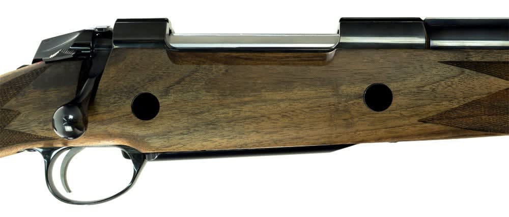 The single-stage trigger is adjustable from 1 kg to 2 kg (2 to 4 lbs). The Sako 85 Safari safety features a mechanism that allows loading and unloading of the rifle with safety engaged. A hinged floor plate allows the fixed magazine to be loaded with up to 5 belted magnum cartridges.