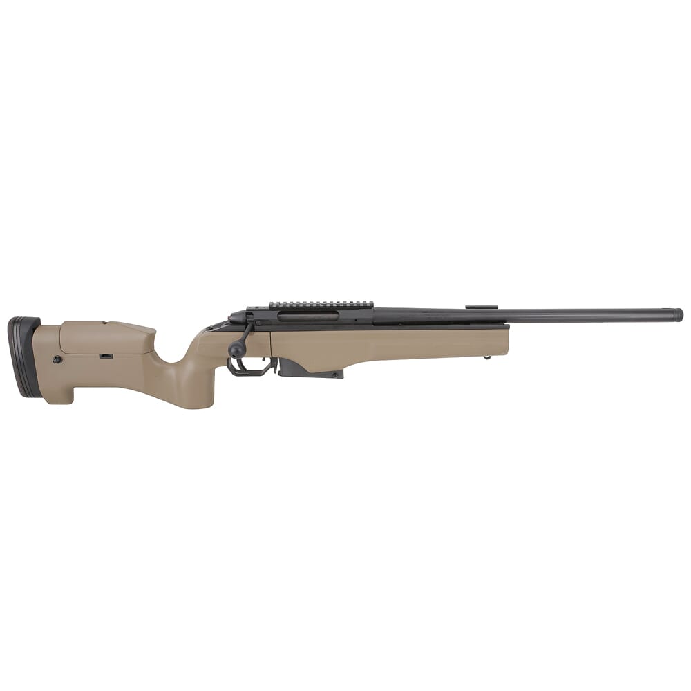The Sako TRG 42 .338 Lapua rifle was designed to hit the target, no matter what it takes. With accuracy, reliability, and versatility, the TRG 42 is ideal for special forces or competition. Features include a green finish, a solid vault-like action cold hammer-forged from special steel alloy, an integral 17mm axial scope mounting rails with integral recoil stop-slots, three locking lugs to feed round, and a detachable staggered 2-row magazine.