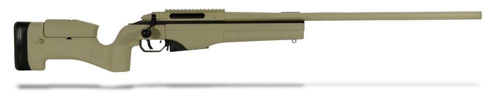 The solid vault-like action is cold hammer-forged from special steel alloy. Integral 17 mm axial scope mounting rails with integral recoil stop-slots on the top of the receiver. The sturdy bolt with three locking lugs feeds rounds unfailingly from the centerline of a detachable staggered 2-row magazine. Reliable feed with various ammunition types. Bolt lift is only 60° for fast bolt throw. This rifle is new and was custom coated with Cerakote. Cerakote improves performance and reliability over conventional finishes.