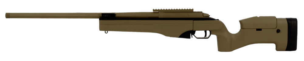 The solid vault-like action is cold hammer-forged from special steel alloy. Integral 17 mm axial scope mounting rails with integral recoil stop-slots on the top of the receiver. The sturdy bolt with three locking lugs feeds rounds unfailingly from the centerline of a detachable staggered 2-row magazine. Reliable feed with various ammunition types. Bolt lift is only 60?? for fast bolt throw.