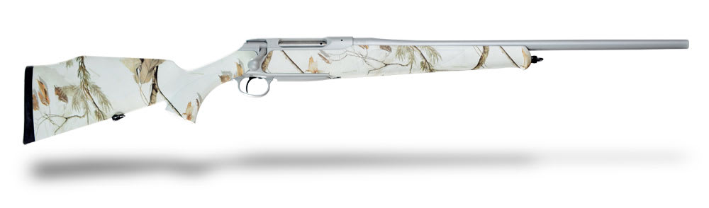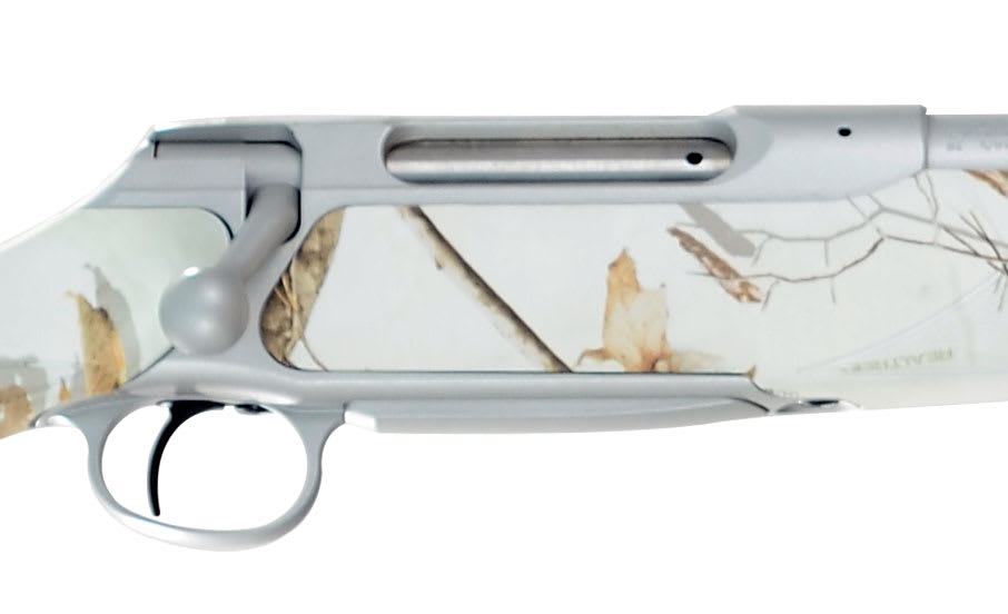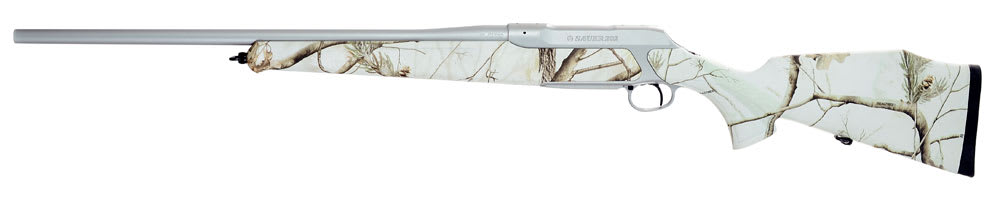 This Sauer 202 Polar .308 Win. Rifle features a steel receiver, silver-ilaflon, round bolt handle, and a synthetic stock with soft touch and realtree AP HD snow.