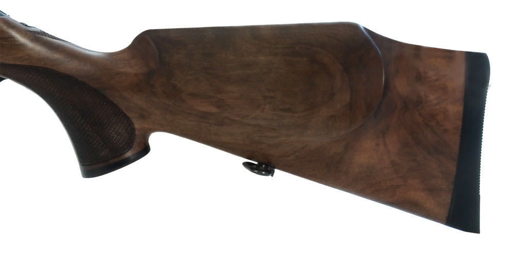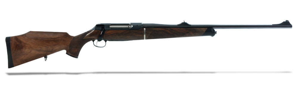 The Sauer 202 Take Down Elegance .30-06 features a steel receiver, llaflon-coated steel parts, category 4 wood Monte-Carlo stock with cheek piece, luxury wood fore-end and pistol grip, jeweled bolt, swept-back bolt handle, and a detachable magazine with metal base.