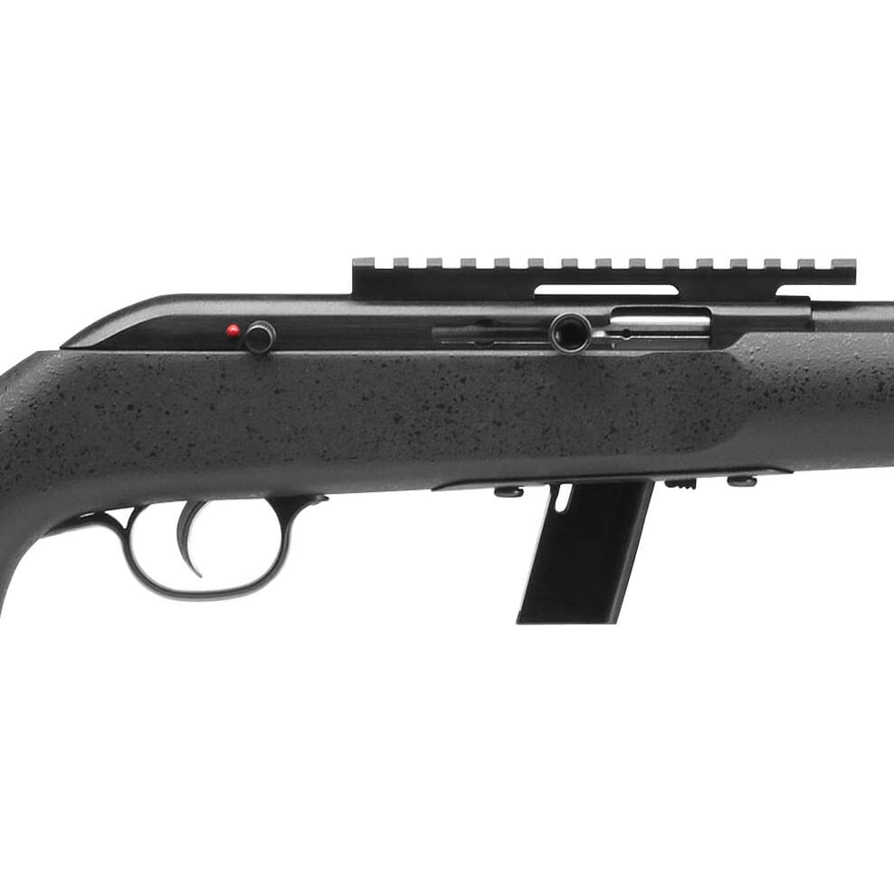This semi-automatic Savage Arms 64 TR-SR 22LR rifle features a 1/2"-28 threaded carbon steel barrel and a detachable box magazine.