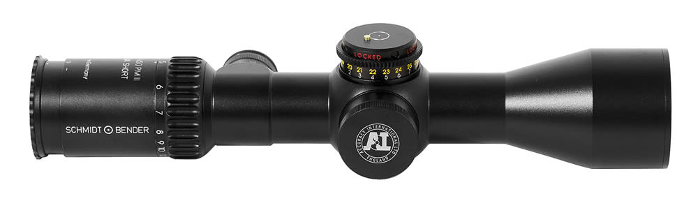 The Schmidt Bender 5-20x50 PMII Ultra Short Riflescope was designed to take up as little real-estate on a rifle as possible while still providing a enough magnification to engage targets at medium to long range. Coming in at less than 12 inches in length, the 5-20x50 PMII Ultra Short leaves plenty of room for attachments like clip-on thermal/night vision optics and tactical lasers. The scope is built on a 34mm tube that aides in providing a large range of adjustment that is required for long range shooting. The 50mm objective in combination with the tube size and proprietary lens coatings produce a crystal clear sight picture with 90% light transmission.