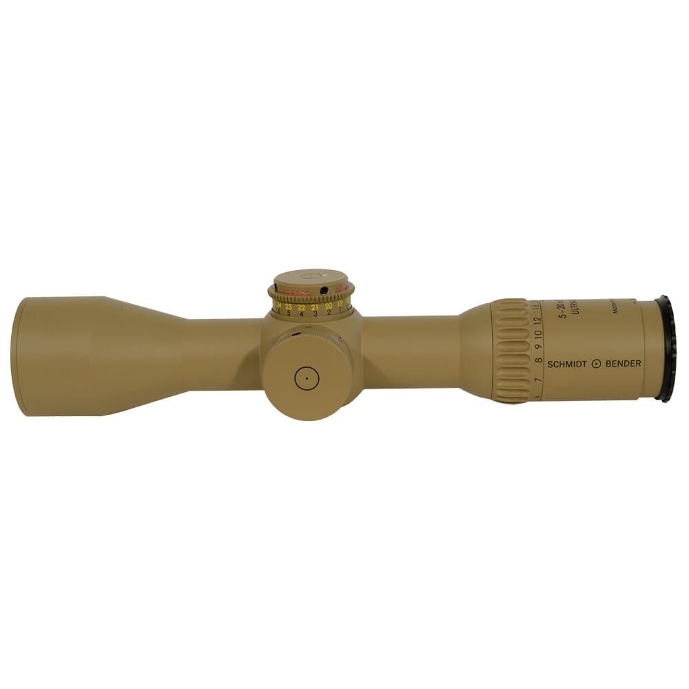 The Schmidt Bender 5-20x50 PMII Ultra Short Riflescope was designed to take up as little real-estate on a rifle as possible while still providing a enough magnification to engage targets at medium to long range. Coming in at less than 12 inches in length, the 5-20x50 PMII Ultra Short leaves plenty of room for attachments like clip-on thermal/night vision optics and tactical lasers. The scope is built on a 34mm tube that aides in providing a large range of adjustment that is required for long range shooting. The 50mm objective in combination with the tube size and proprietary lens coatings produce a crystal clear sight picture with 90% light transmission.