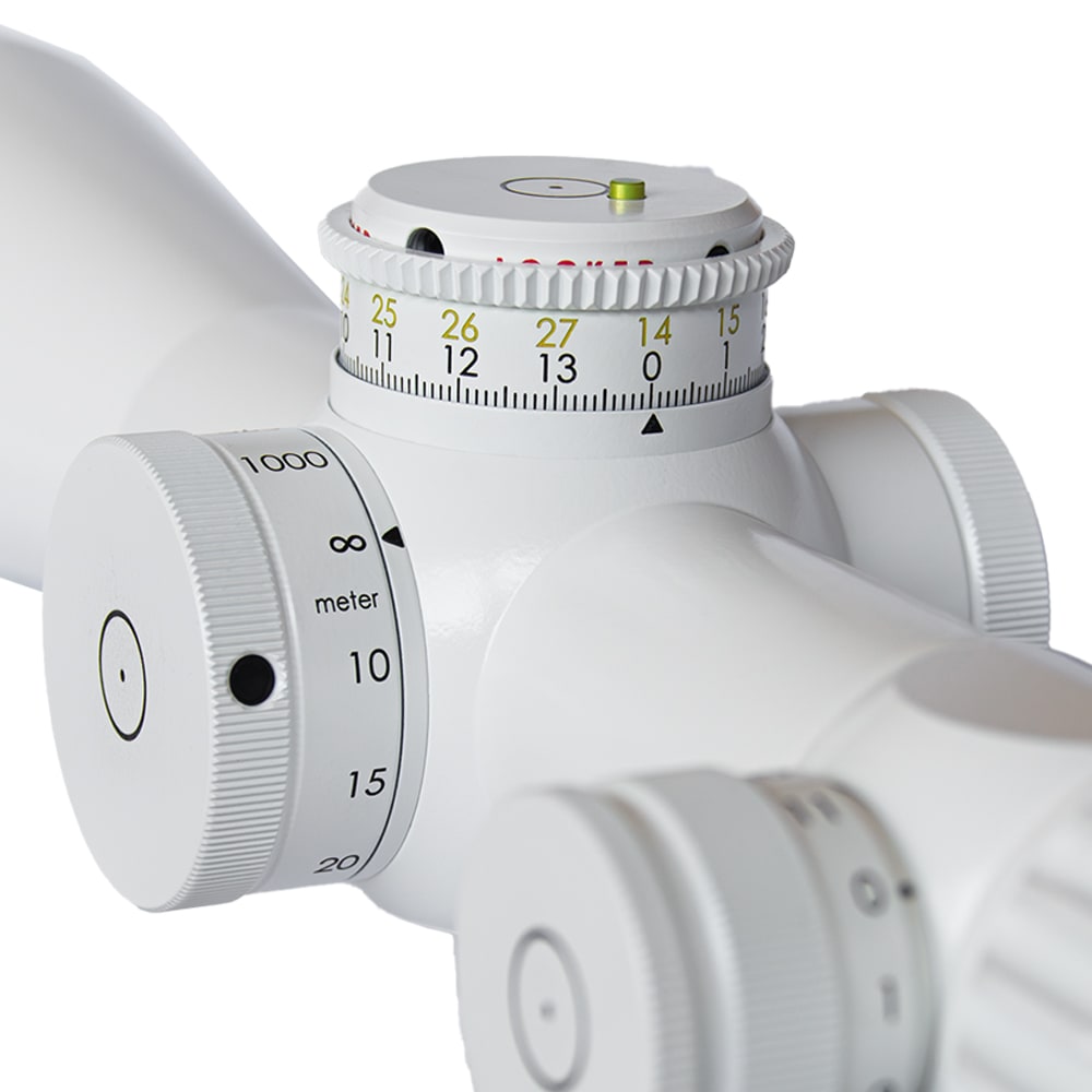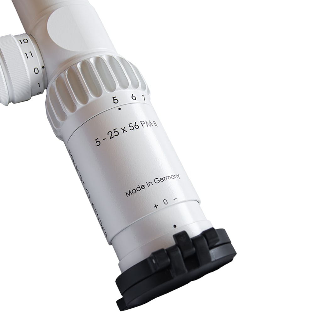 The Schmidt & Bender 5–25×56 PM II LP P5FL (1cm CW DT27 MTC LT / ST ZC LT, RAL 9010) is a precision-engineered riflescope built for professional military, law enforcement, and competition marksmen. With a broad magnification range from 5× to 25×, it delivers outstanding optical clarity and flexibility for both mid- and long-range shooting scenarios. The high-performance 56mm objective lens and excellent 90% light transmission ensure superior brightness, even in low-light conditions. The scope features the advanced P5FL reticle in the first focal plane, allowing consistent subtensions across all magnifications. Illumination with 11 brightness settings ensures reticle visibility in any light. Its DT27 double-turn elevation turret and ST ZC capped windage turret offer tactile, repeatable adjustments in 0.1mrad increments. The rugged 34mm tube is coated in RAL 9010 matte white, offering both style and durability. Parallax can be finely adjusted from 10 meters to infinity using a side knob, enhancing precision across varied distances. This scope is ideal for those demanding maximum optical performance, extreme mechanical precision, and battlefield-proven reliability.