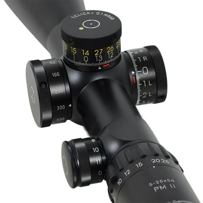 The 5-25x56 PM II riflescope from Schmidt & Bender is known for its versatility with a large magnification range. If long distance is what you're after, then you'll enjoy the ability to see over 6500 feet with the 5-25x56 PM II. There's nothing quite like the 5-25x56 PM II from Schmidt & Bender.