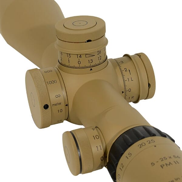 The 5-25x56 PM II riflescope from Schmidt & Bender is known for its versatility with a large magnification range. If long distance is what you're after, then you'll enjoy the ability to see over 6500 feet with the 5-25x56 PM II. There's nothing quite like the 5-25x56 PM II from Schmidt & Bender.