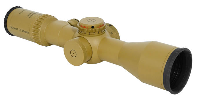 The Schmidt Bender 5-20x50 PMII Ultra Short Riflescope was designed to take up as little real-estate on a rifle as possible while still providing a enough magnification to engage targets at medium to long range. Coming in at less than 12 inches in length, the 5-20x50 PMII Ultra Short leaves plenty of room for attachments like clip-on thermal/night vision optics and tactical lasers. The scope is built on a 34mm tube that aides in providing a large range of adjustment that is required for long range shooting. The 50mm objective in combination with the tube size and proprietary lens coatings produce a crystal clear sight picture with 90% light transmission.