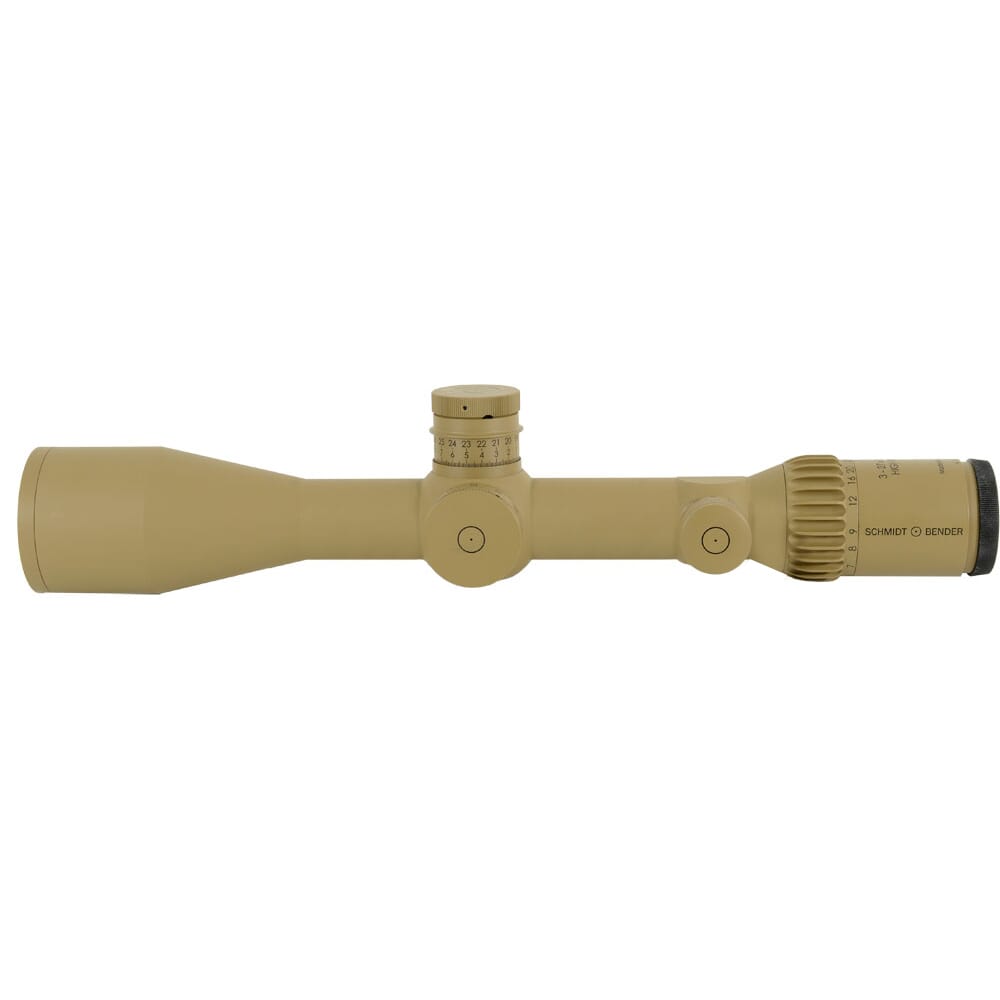The 3-27x56 PM II line features some of Schmidt Benders most advanced elevation and windage turret options. Like the Gen II Double Turn II+ with tactile turn indicator, MTC or ZC and Locking Turret, that features a lower profile allowing for the mounting of a reflex sight above the scope. On the other end of the spectrum, the Multi Turn II with tactile and visible revolution indicator, MTC and locking Turret option that provides a more precise .05 mrad (or 1/8 MOA) adjustments while displaying markings for 5 full revolutions.