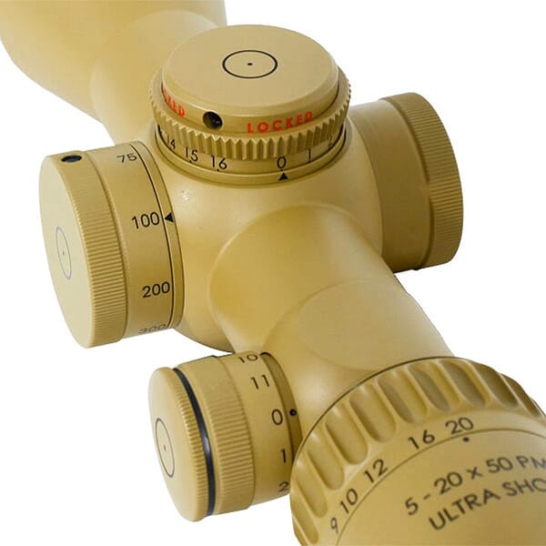 To keep the riflescope as compact as possible, all Schmidt Bender 5-20x50 PMII Ultra Short Riflescopes feature low profile elevation and windage turrets, allowing for the mounting of reflex sights for close range engagements. All Schmidt Bender 5-20x50 PMII Ultra Short scopes come with locking turrets and ZeroClick to ensure the scopes zero is never unintentionally reset or lost. Some elevation turret options for the 5-20x50 PMII Ultra Short also feature Schmidt Bender’s MTC (More Tactile Clicks) technology, allowing for faster and more intuitive adjustments to elevation when engaging targets are varying distances.