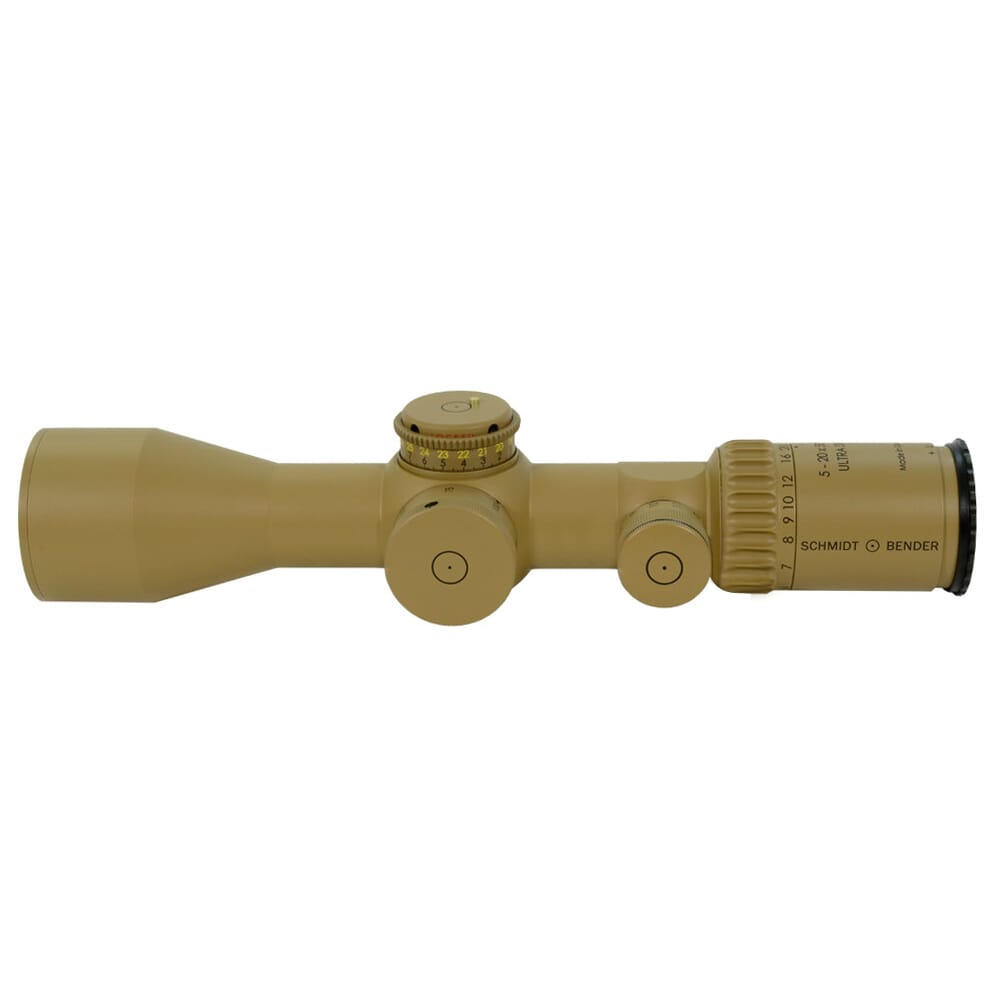The Schmidt Bender 5-20x50 PMII Ultra Short Riflescope was designed to take up as little real-estate on a rifle as possible while still providing a enough magnification to engage targets at medium to long range. Coming in at less than 12 inches in length, the 5-20x50 PMII Ultra Short leaves plenty of room for attachments like clip-on thermal/night vision optics and tactical lasers. The scope is built on a 34mm tube that aides in providing a large range of adjustment that is required for long range shooting. The 50mm objective in combination with the tube size and proprietary lens coatings produce a crystal clear sight picture with 90% light transmission.