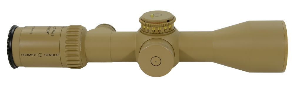 The Schmidt Bender 5-20x50 PMII Ultra Short Riflescope was designed to take up as little real-estate on a rifle as possible while still providing a enough magnification to engage targets at medium to long range. Coming in at less than 12 inches in length, the 5-20x50 PMII Ultra Short leaves plenty of room for attachments like clip-on thermal/night vision optics and tactical lasers. The scope is built on a 34mm tube that aides in providing a large range of adjustment that is required for long range shooting. The 50mm objective in combination with the tube size and proprietary lens coatings produce a crystal clear sight picture with 90% light transmission.