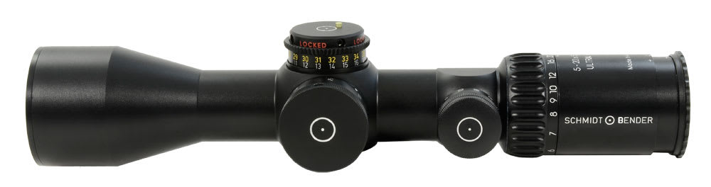 The Schmidt Bender 5-20x50 PMII Ultra Short Riflescope was designed to take up as little real-estate on a rifle as possible while still providing a enough magnification to engage targets at medium to long range. Coming in at less than 12 inches in length, the 5-20x50 PMII Ultra Short leaves plenty of room for attachments like clip-on thermal/night vision optics and tactical lasers. The scope is built on a 34mm tube that aides in providing a large range of adjustment that is required for long range shooting. The 50mm objective in combination with the tube size and proprietary lens coatings produce a crystal clear sight picture with 90% light transmission.