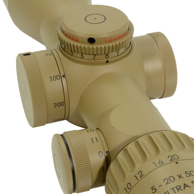 To keep the riflescope as compact as possible, all Schmidt Bender 5-20x50 PMII Ultra Short Riflescopes feature low profile elevation and windage turrets, allowing for the mounting of reflex sights for close range engagements. All Schmidt Bender 5-20x50 PMII Ultra Short scopes come with locking turrets and ZeroClick to ensure the scopes zero is never unintentionally reset or lost. Some elevation turret options for the 5-20x50 PMII Ultra Short also feature Schmidt Bender’s MTC (More Tactile Clicks) technology, allowing for faster and more intuitive adjustments to elevation when engaging targets are varying distances.