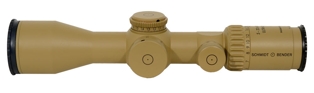 To keep the riflescope as compact as possible, all Schmidt Bender 5-20x50 PMII Ultra Short Riflescopes feature low profile elevation and windage turrets, allowing for the mounting of reflex sights for close range engagements. All Schmidt Bender 5-20x50 PMII Ultra Short scopes come with locking turrets and ZeroClick to ensure the scopes zero is never unintentionally reset or lost. Some elevation turret options for the 5-20x50 PMII Ultra Short also feature Schmidt Bender’s MTC (More Tactile Clicks) technology, allowing for faster and more intuitive adjustments to elevation when engaging targets are varying distances.