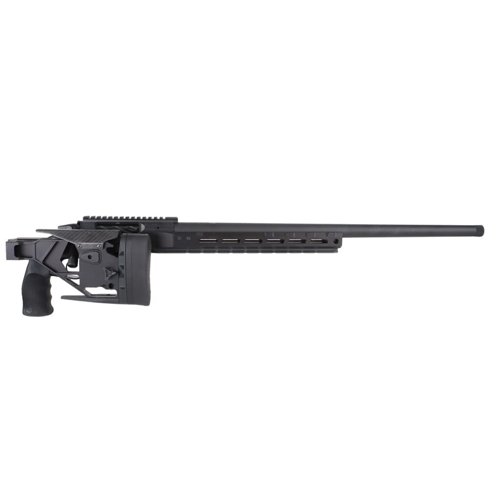 In addition to its improvements, the HIT Pro offers all of the same features as the standard HIT. It comes outfitted with a folding stock which can be finely tuned to fit an individual shooter, with an adjustable length of pull as well as vertical and rotational recoil pad adjustment. The stock also features an integrated bag rider, and an adjustable cheek piece as well. The HIT Pro ’s receiver has an integrated 20 MOA picatinny rail milled directly on top, and utilizes a Seekins Gen II bolt which can be disassembled without the use of tools. Other features of the HIT Pro include a dust cover over the ejection port, is compatible with both single and double stack AICS magazines, and features a removable M-LOK pattern fore-grip for the installation of bipods, clip-on optic devices and other accessories. In addition, the HIT PRO rifle utilizes a quick-change barrel system with guaranteed headspace, allowing the user to swap out different barrels for different applications.