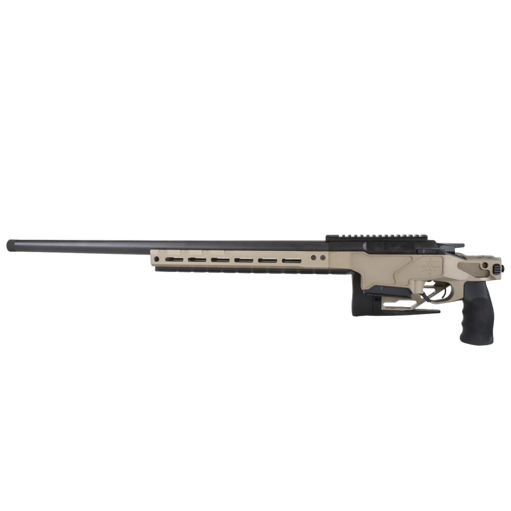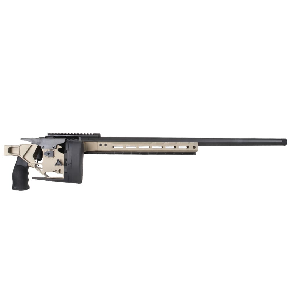 In addition to its improvements, the HIT Pro offers all of the same features as the standard HIT. It comes outfitted with a folding stock which can be finely tuned to fit an individual shooter, with an adjustable length of pull as well as vertical and rotational recoil pad adjustment. The stock also features an integrated bag rider, and an adjustable cheek piece as well. The HIT Pro ’s receiver has an integrated 20 MOA picatinny rail milled directly on top, and utilizes a Seekins Gen II bolt which can be disassembled without the use of tools. Other features of the HIT Pro include a dust cover over the ejection port, is compatible with both single and double stack AICS magazines, and features a removable M-LOK pattern fore-grip for the installation of bipods, clip-on optic devices and other accessories. In addition, the HIT PRO rifle utilizes a quick-change barrel system with guaranteed headspace, allowing the user to swap out different barrels for different applications.