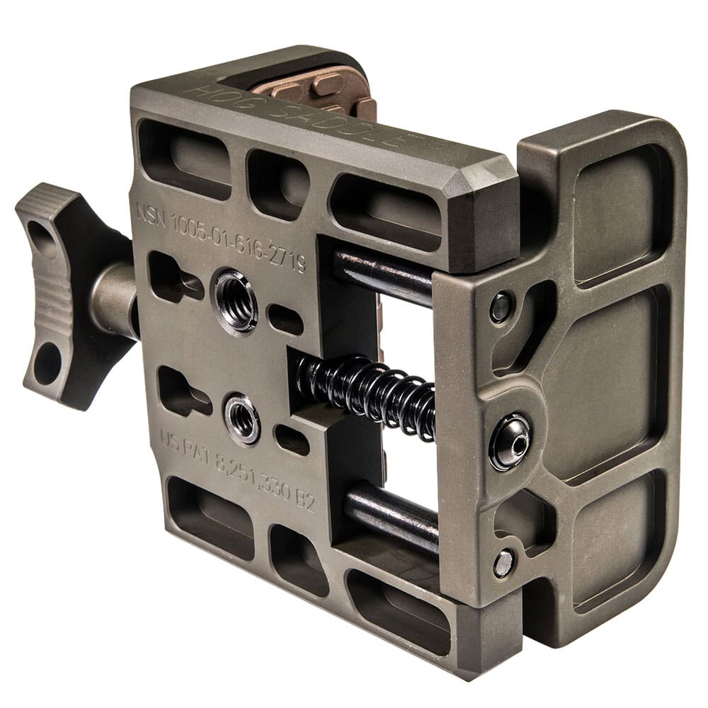 The Hog Saddle MOD7 is currently a standard issue item with the U.S. Marine Corps and boasts several improvements over its predecessor. It opens ¼” wider when compared to the previous design and features a retention button screw to prevent unintentional disassembly while in use. The MOD7’s weight has also been reduced to 15.8 ounces and additional cut outs better help accommodate tripod heads and QR plates with anti-rotation pins. In addition, the MOD7 is milled from a solid piece of aluminum and has received a hard anodized finish. The MOD7 also sports ¼” thick recessed pads to absorb rifle recoil and decrease muzzle jump.