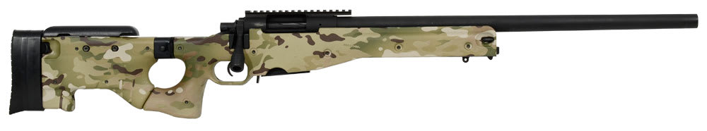 Surgeon SRS action and 23" Krieger threaded (5/8x24) barrel. AI 2.0 dipped multi-camo stock. Timney trigger and 20 MOA rail. 1500 rounds fired.