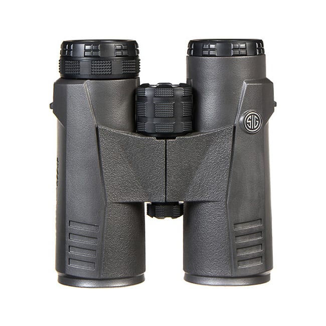 These close-bridge Sig Sauer Zulu5 8x42mm binoculars feature a graphite finish, HD glass, fully multi-coated lenses, lightweight rugged construction, fully sealed waterproof and fogproof barrels, and deflection armor for total stealth mode.