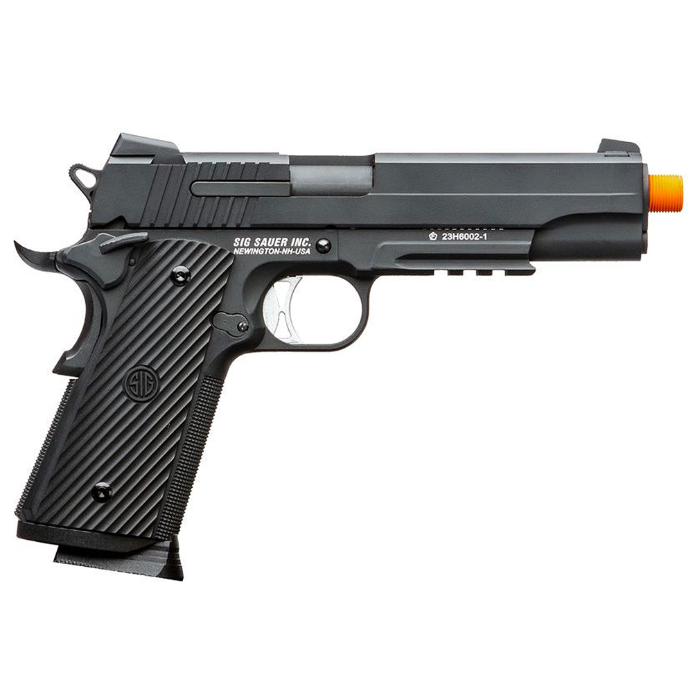 The Sig Sauer ProForce 1911 Tacops is a CO₂‑powered airsoft pistol built as a full‑metal blowback replica of the classic 1911 Tacops. It features functional controls (ambidextrous thumb safeties, grip safety), a Picatinny / accessory rail, a 14 mm CCW threaded muzzle for addons, adjustable hop-up, and realistic operation that mimics centerfire 1911 behavior. It’s designed for training, tactical play, and realistic feel in airsoft environments.