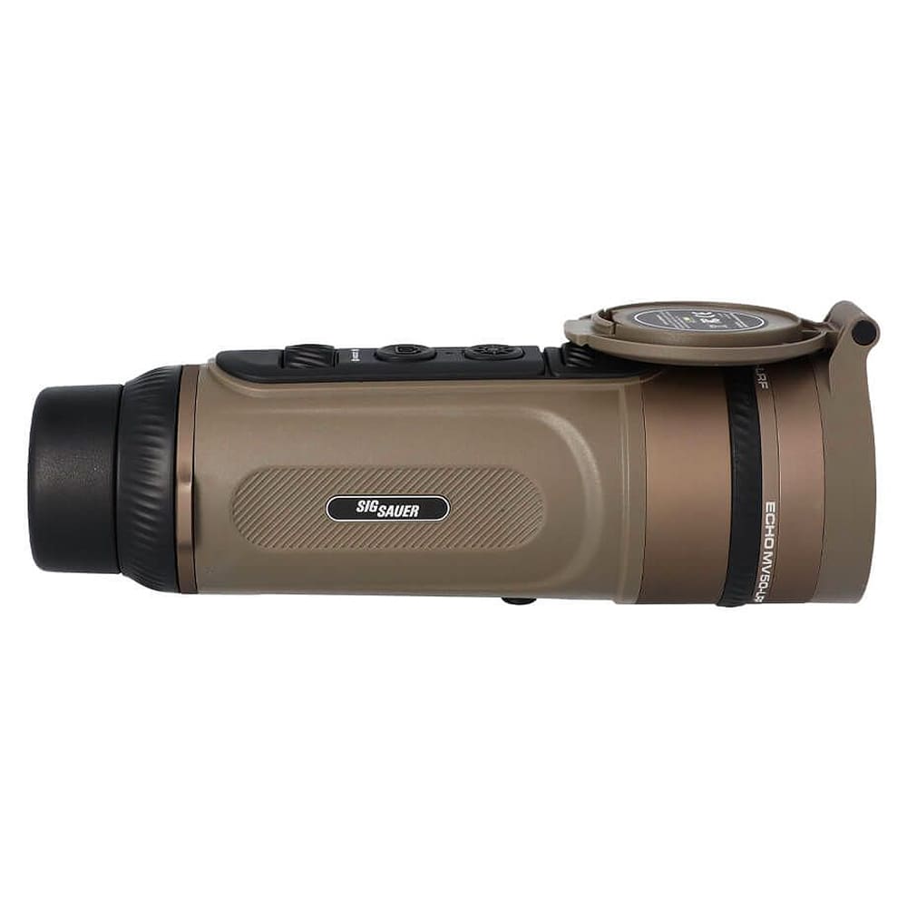 The Sig Sauer Echo MV50‑LRF is a high-performance thermal monocular featuring a 640 × 512 LWIR thermal core with 12µm pixel pitch, combined with an integrated laser rangefinder (LRF) capable of distances up to 1,000 yards. With a 3–24× digital zoom range, a 50Hz refresh rate, under 20mK thermal sensitivity, and compatibility with SIG’s BDX 2.0 mobile app, this device supports photo/video capture, color palette modes, and ballistic data exchange with SIG riflescopes. It’s designed for rugged field use with IP67 water and dust resistance, and backed by SIG Sauer’s Infinite Guarantee.