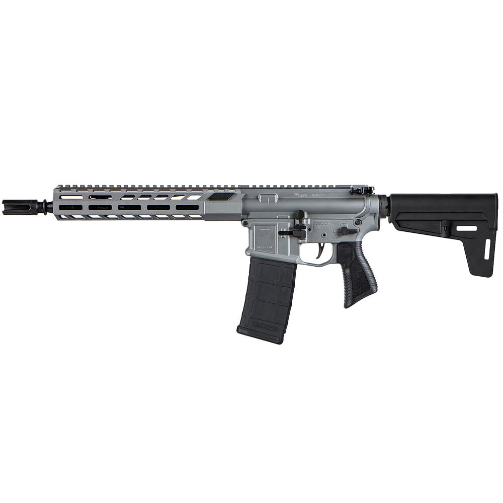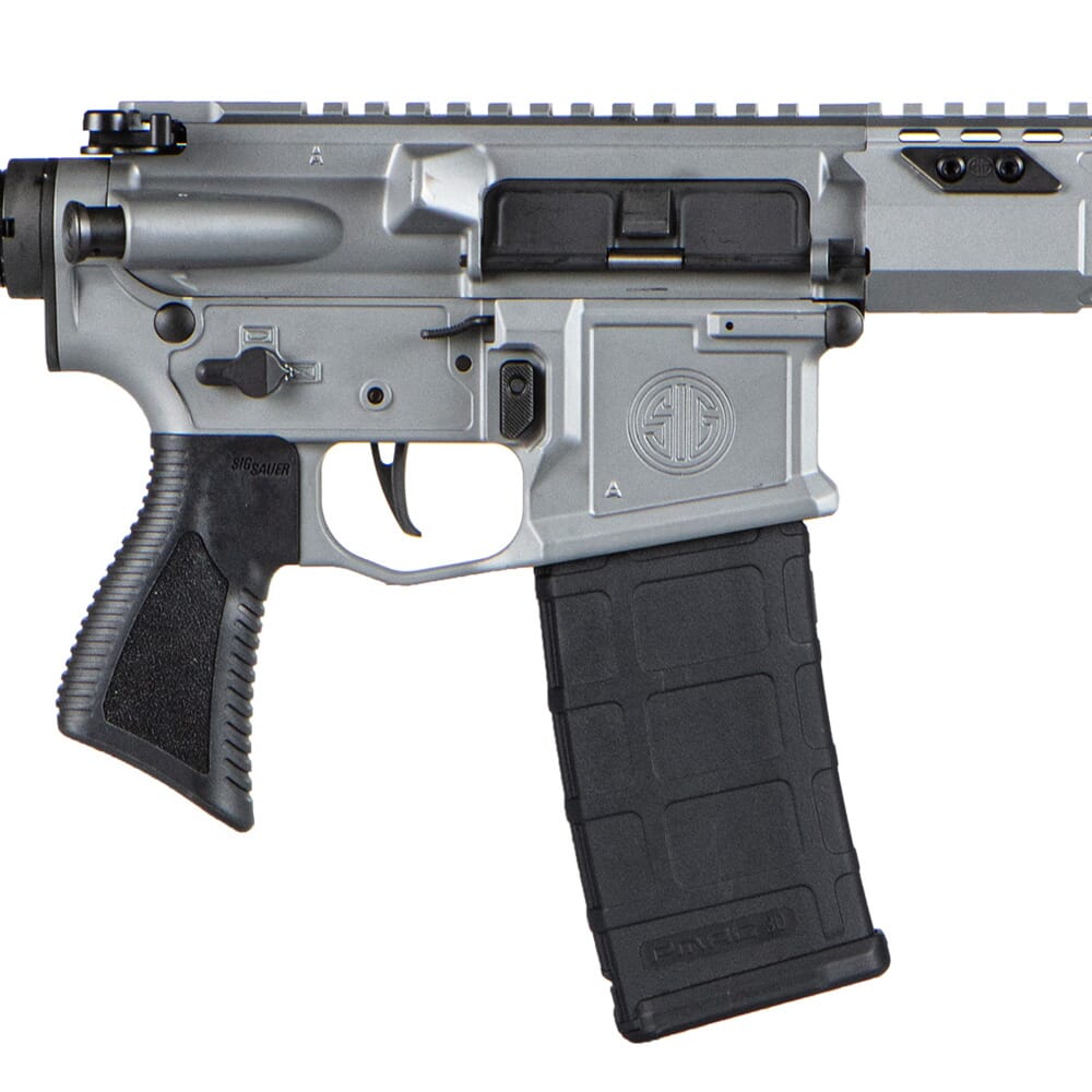Sig Sauer takes the M400 series to the next level with the M400 Switchblade! This AR-platform pistol is outfitted with the 2-Stage Matchlite Duo trigger which offers a reduced pull weight and a crisp, clean brake at around 5 lbs. The free-floating handguard features multiple MLOK attachment points for a wide range of accessory options, as well as lightening cuts to reduce weight and vent off the excess heat generated from firing. The M400 Switchblade operates via a direct impingement system, and comes with a three-prong flash hider.