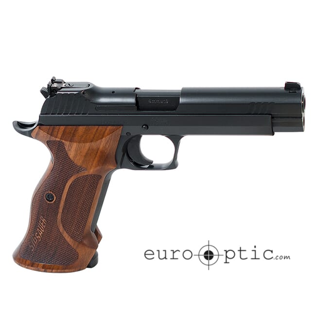 The Sig Sauer P210 takes much of its design from its 1947 Swiss service pistol predecessor, and has since gained a reputation for being accurate. The improved version of this single action, semiautomatic pistol boasts a sleek, precision-machined stainless steel slide and frame as well as a carbon steel barrel. The trigger on the P210 is target grade that features a crisp pull and a short take up. The design of the P210 is a combination of a classic appearance and enhanced ergonomics with checkered walnut grips that fit naturally in the hand.