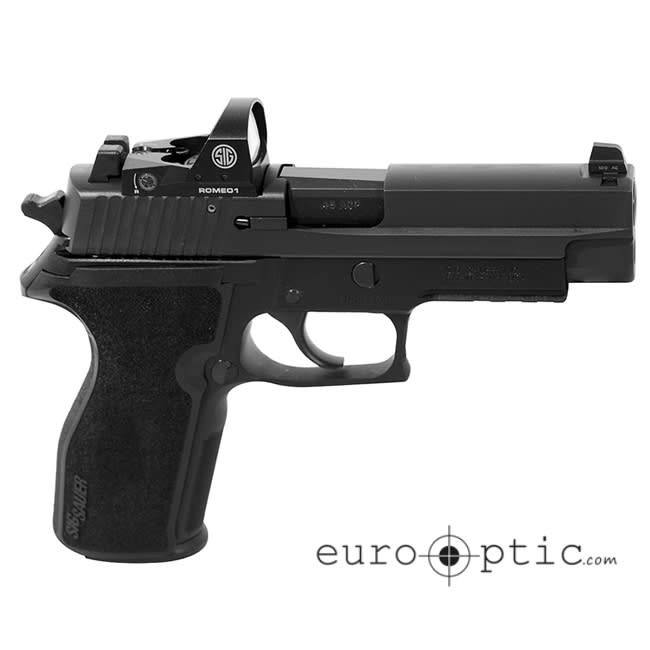 The Sig P227 is a highly functional and ergonomic pistol chambered in .45 ACP. With 10 rounds of ammo per clip you can be confident that it will deliver the accuracy and power you need down range. This particular model is equipped with E2 Grips and a Sig Optics Romeo 1 reflex sight. It has a double/single action and comes in a black finish.
